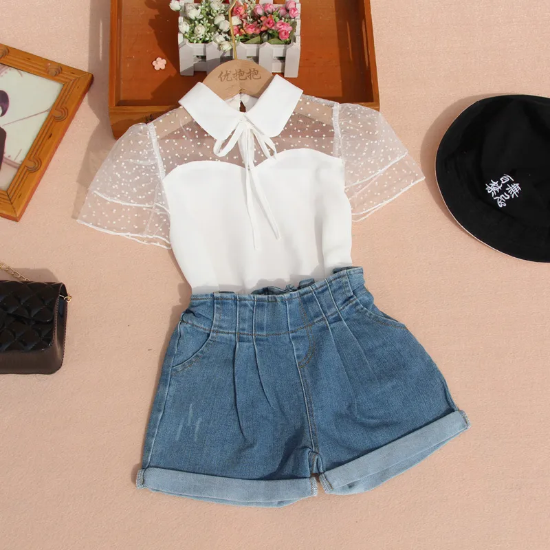 conjuto de ropa camisa blanca trasperente con short de mezclilla